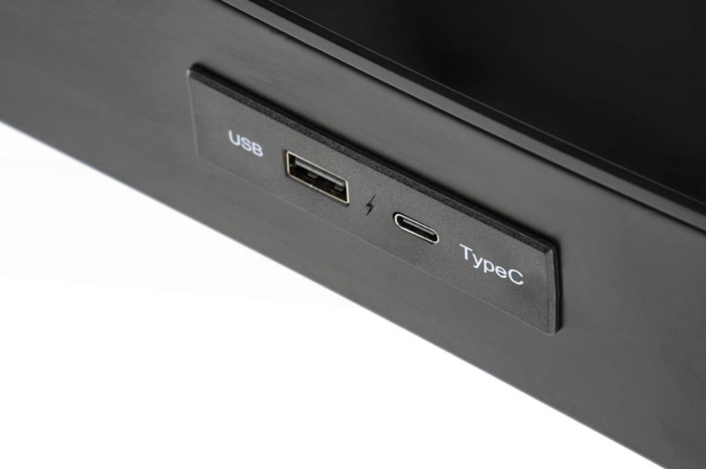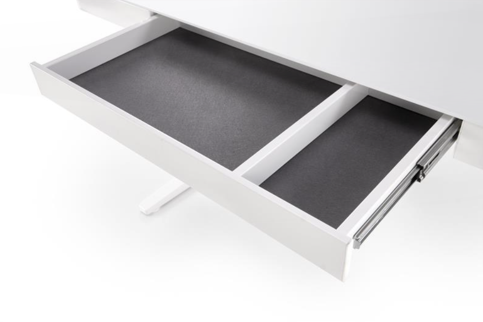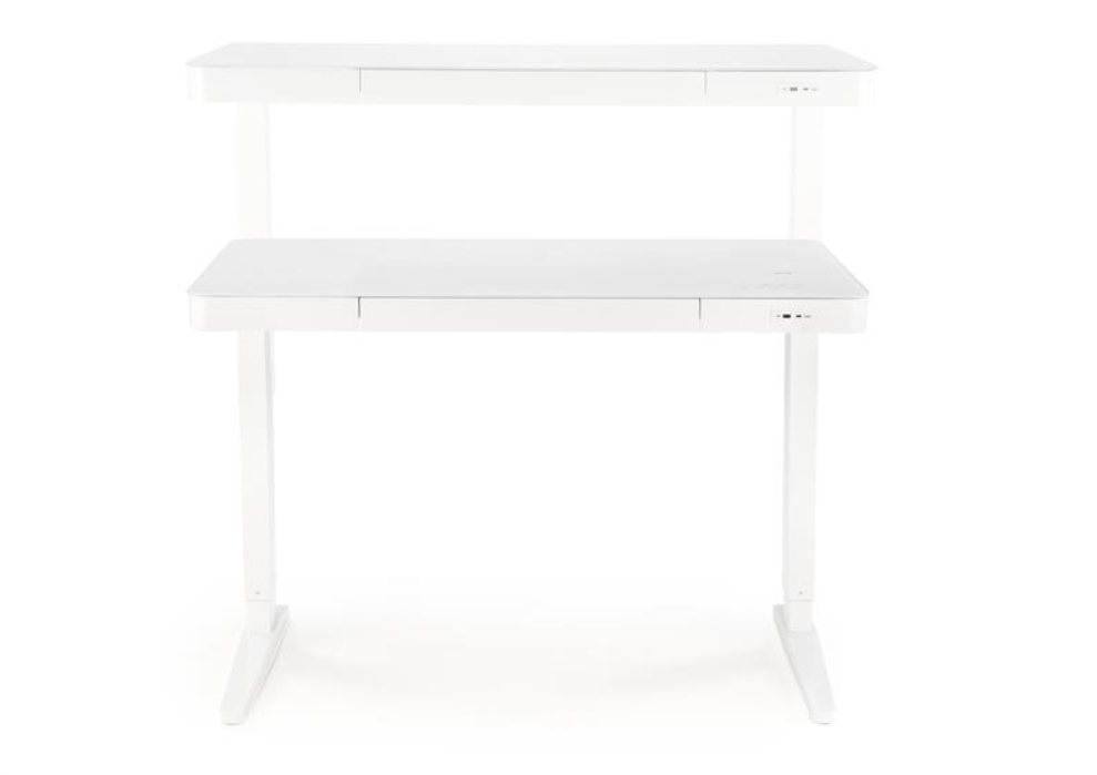 wymiory: 120/60/77-120 cm; biurko z funkcją regulacji wysokości / ekran dotykowy / ładowanie bezprzewodowe / port USB, materiał: szkło / stal malowana proszkowo, kolor: biały / czarny